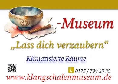 • Das Klangschalenmuseum verbindet klassische Ausstellung mit einem ganzheitlichen Erlebnis. Im Mittelpunkt stehen Klangschalen aus verschiedenen Kulturen, deren Wirkung auf Körper und Geist im Museum erlebbar gemacht wird.